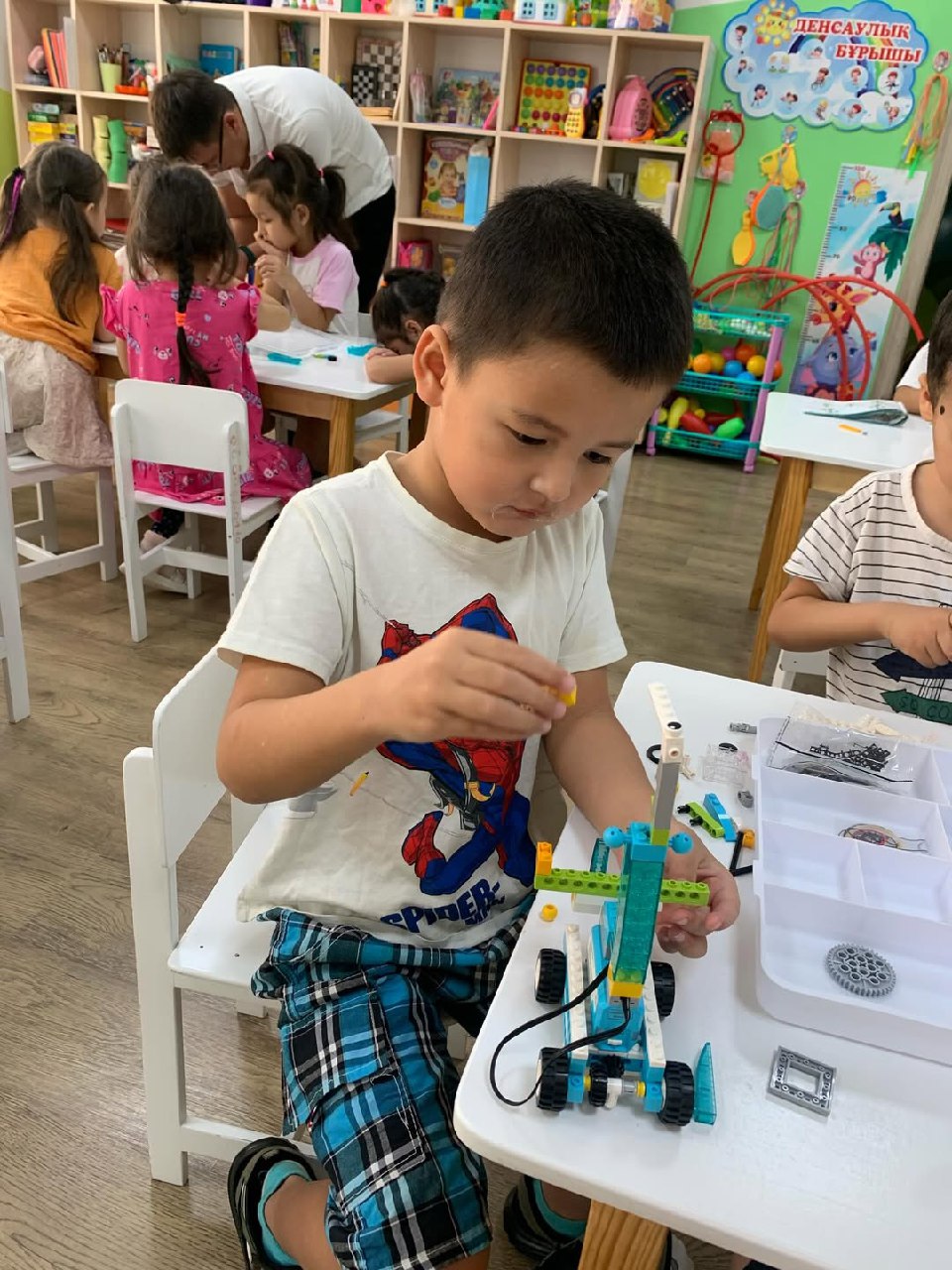 Бүгін Бақытты бала садигінде робототехника сабағы тағы да қызық өтті. Балалар құрастырып, зерттеп, өз ойларын іске асырды — нағыз кішкентай шеберлер